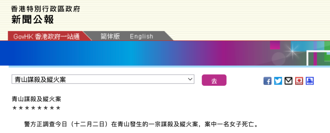 据香港特区政府新闻公报,警方正调查12月2日在青山发生的一宗谋杀及纵火案,案中一名女子死亡。