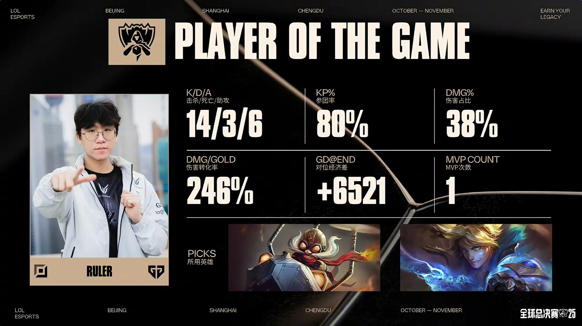 中期25分钟GEN利用视野优势嘉理证券,偷下厄塔汗。27分钟Ruler的EZ精准技能击杀Ppeter牛头,随后GEN拿下第一条大龙。后期33分钟GEN埋伏抓死排眼的Cuzz琪亚娜,拿下水龙魂。35分钟双方野区混战,GEN多人复活甲,击杀KT三人后,拿下第二条大龙。最终38分钟GEN在高地越塔开团,击杀KT三人后,拿下第二局的胜利。MVP给到了Ruler的EZ。